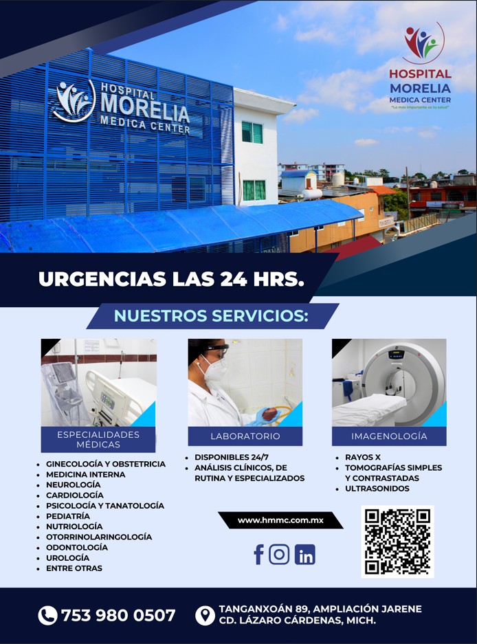 Salud Clínicas y HospitalesMEDICINA OCUPACIONAL, CURSOS PARA EMPRESAS O ESCUELAS, SERVICIOS DE HOSPITALIZACION Y QUIRURGICOS, ESPECIALIDADES MEDICAS, SERVICIO DE AMBULANCIA, AUDIOMETRIAS, ESPIROMETRIAS, VISIOMETRIAS, ULTRASONIDOS, TOMOGRAFIA, RAYOS X, FARMACIA, COCINA.