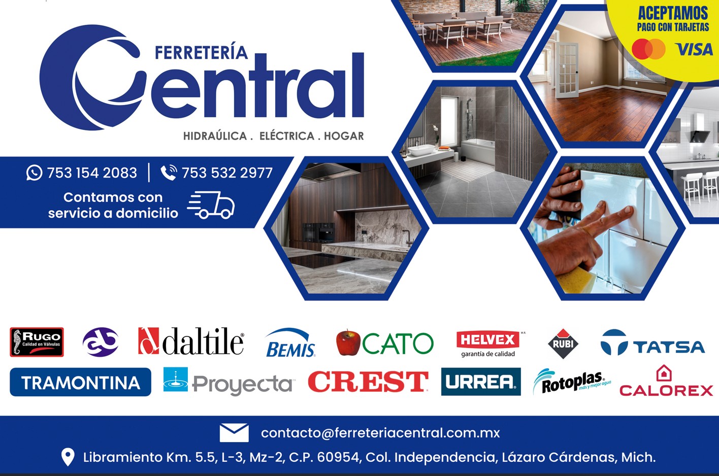 Todo para su construcción: cemento, mortero, varilla, tabique, plomería, electricidad y ferretería en general. ...