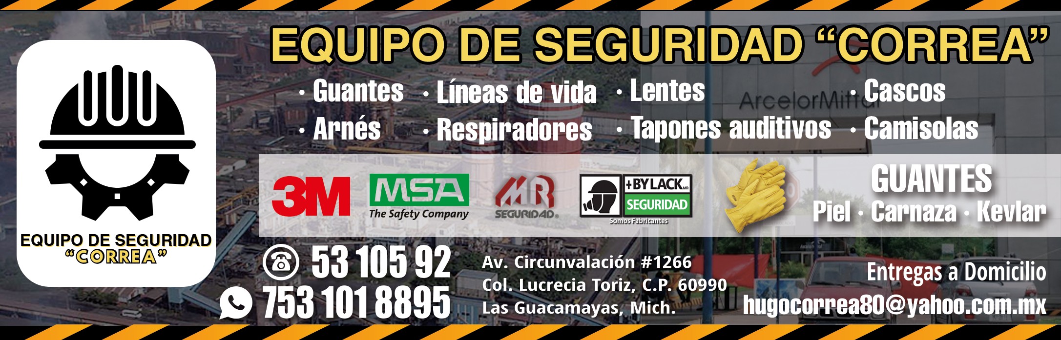 Seguridad Equipos de Seguridad IndustrialEquipo de seguridad industrial. Guantes, Arnés, Líneas de vida, Respiradores, Lentes Tapones auditivos, Cascos, Camisolas.